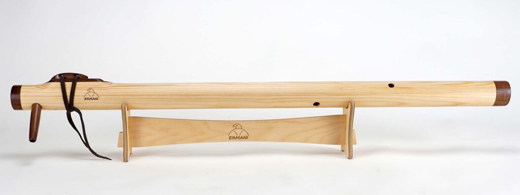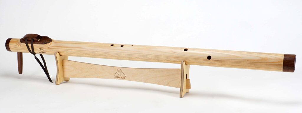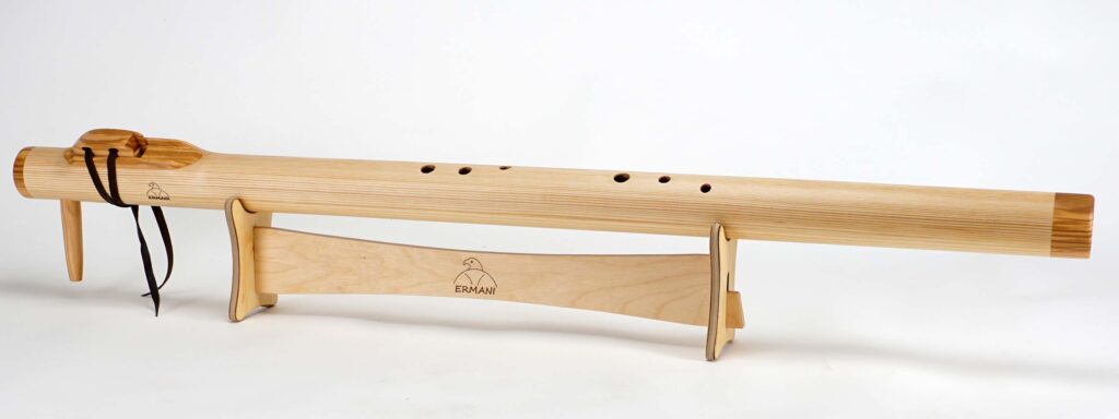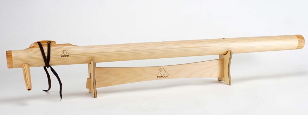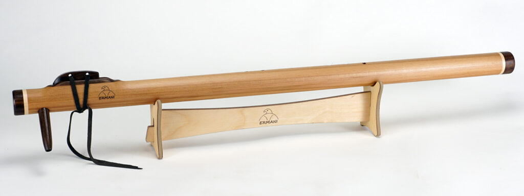 Sie ist eine tief klingende Variante der Native-American-Flöte und verbindet kraftvolle Tiefe mit klarer Präsenz. Außerdem ist sie groß und lang, jedoch etwas handlicher als eine D-Bassflöte. Gefertigt wird sie meist aus guten Resonanzhölzern, was ihr eine warme Resonanz und ein natürliches Erscheinungsbild verleiht.