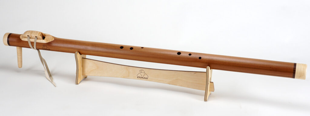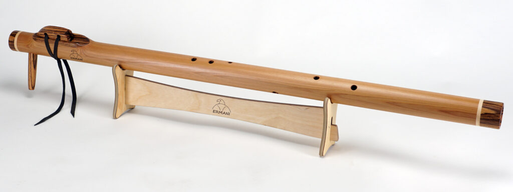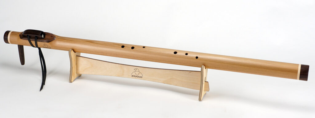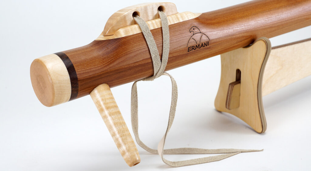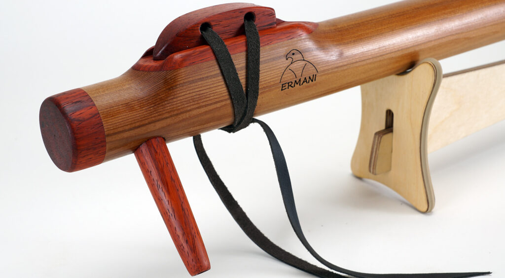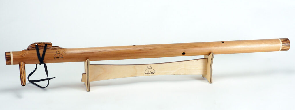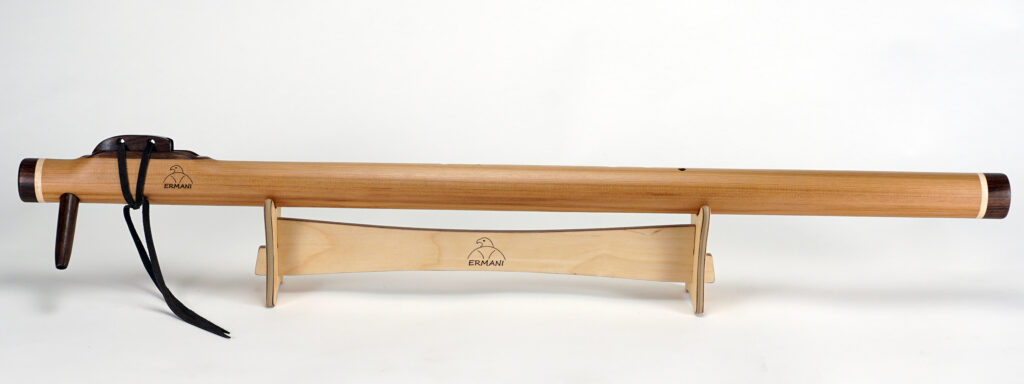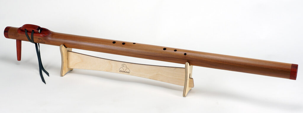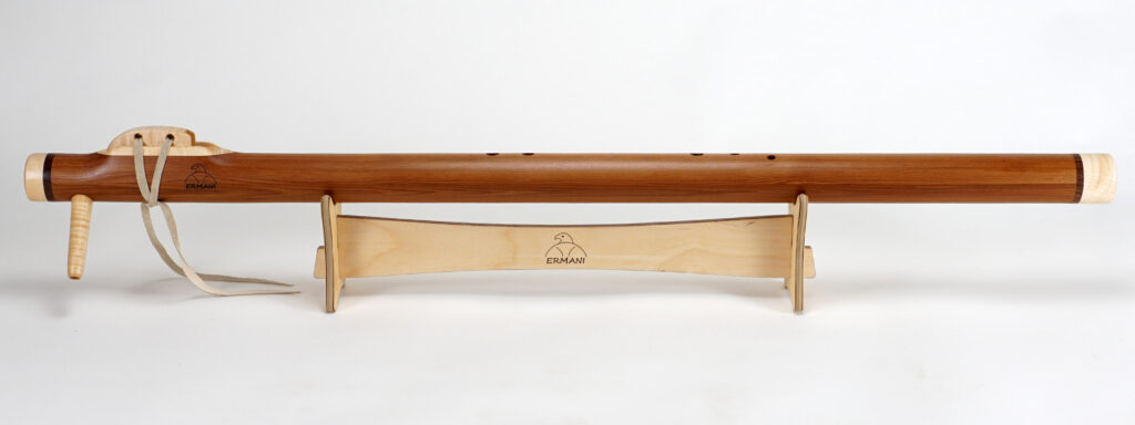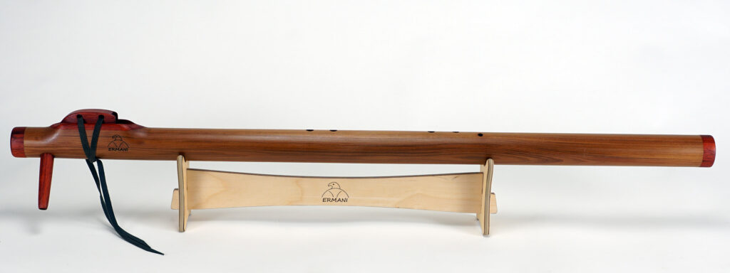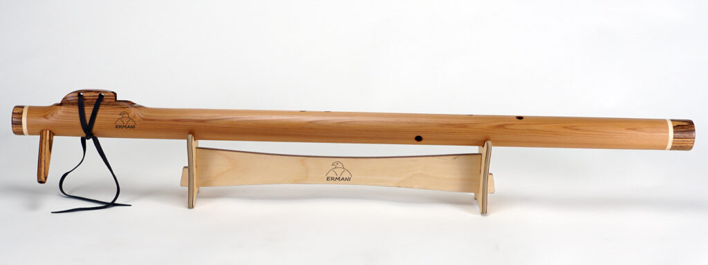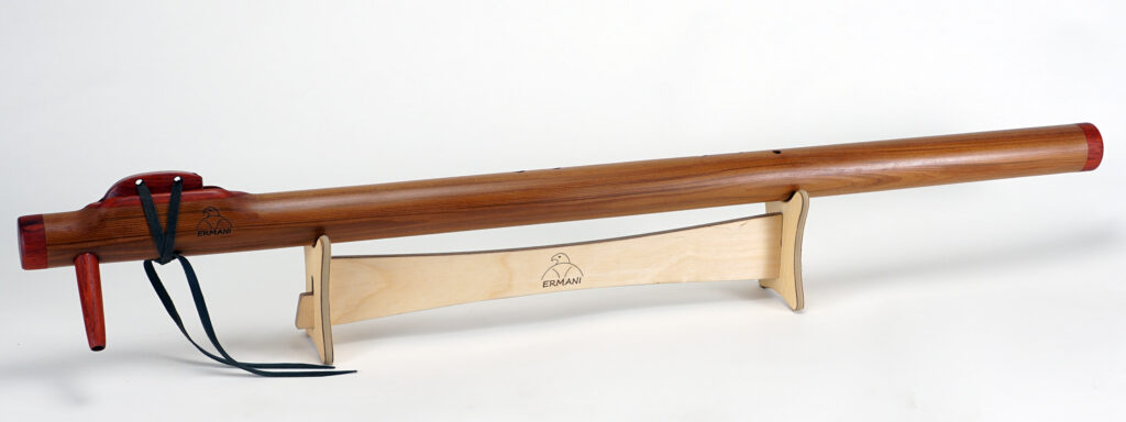 E1703 Ermani Bassflöte in Western Red Zeder. Mundstück, Block sowie Kopf und Endstück in Padouk. Die E-Bassflute ist eine der tiefsten Stimmen innerhalb der Native American Flötenfamilie. Ihr warmer, voller Klang in E-Moll berührt das Herz und schafft eine Atmosphäre von Ruhe und Geborgenheit.