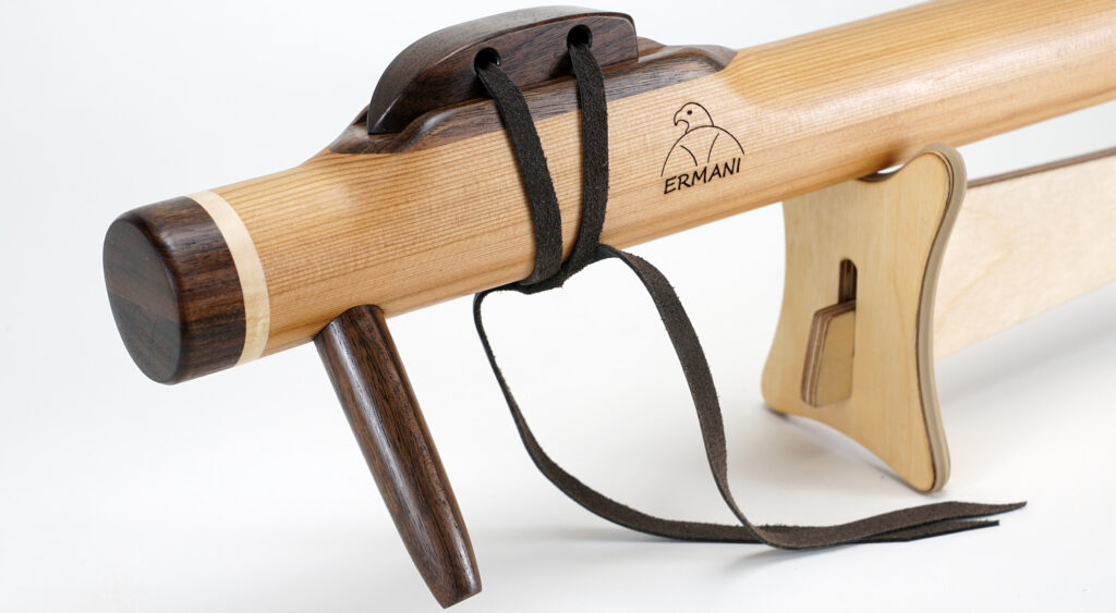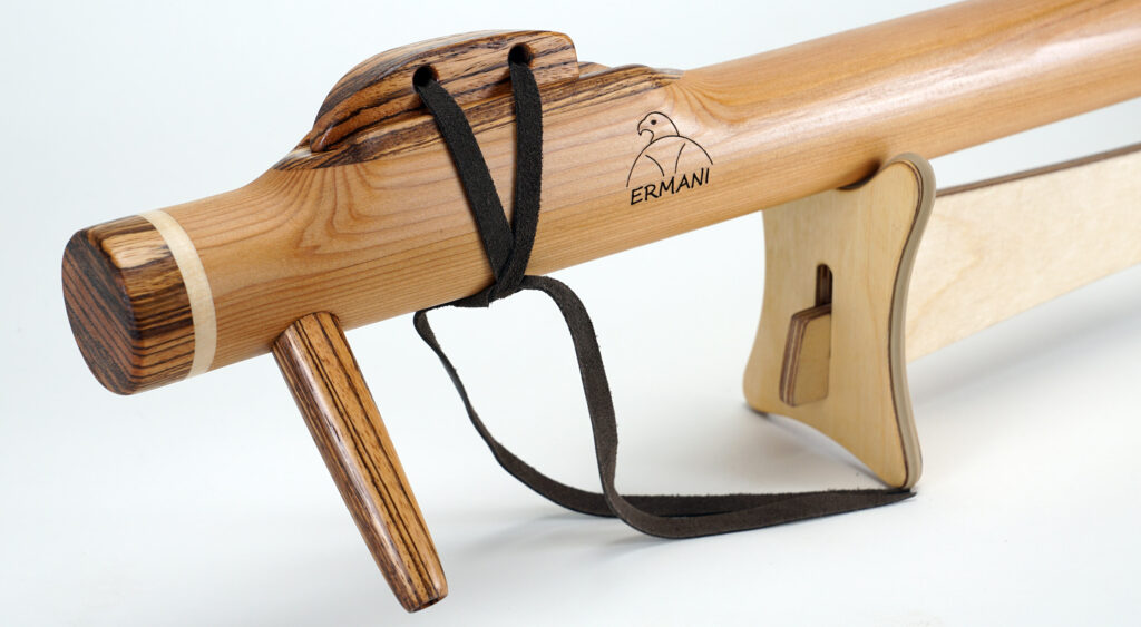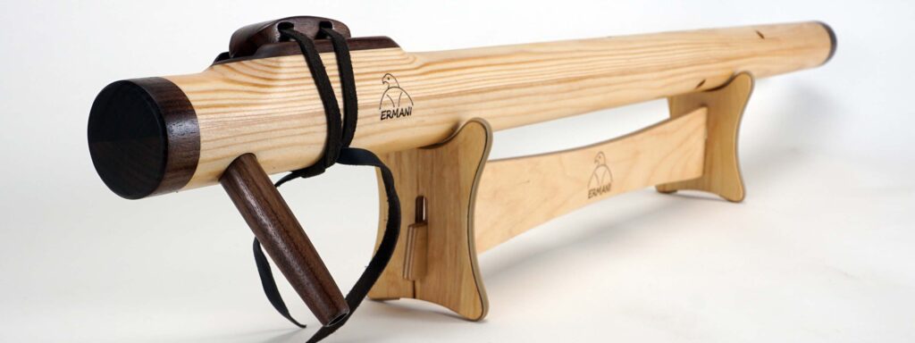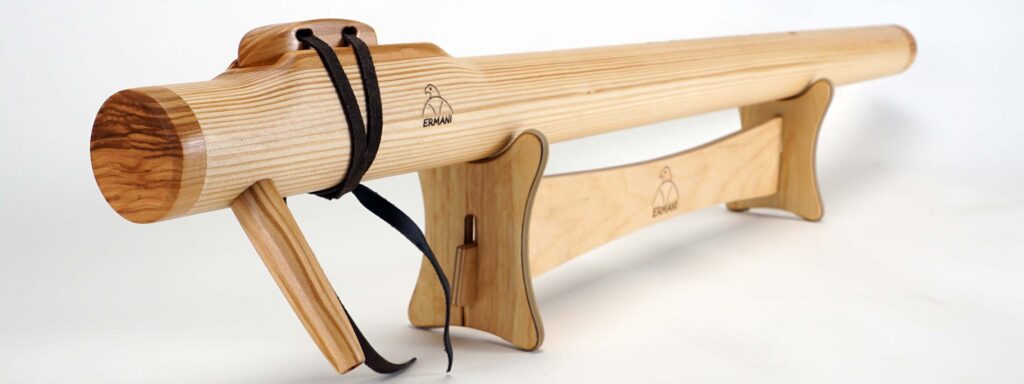 Sie ist lang und voluminös gebaut, damit die tiefen Töne frei schwingen können. Beim Spielen entsteht ein sonorer, dunkler Klang, der sich langsam entfaltet und viel Raum füllt. Jeder Ton klingt weich nach und hat eine erdige, fast archaische Präsenz.