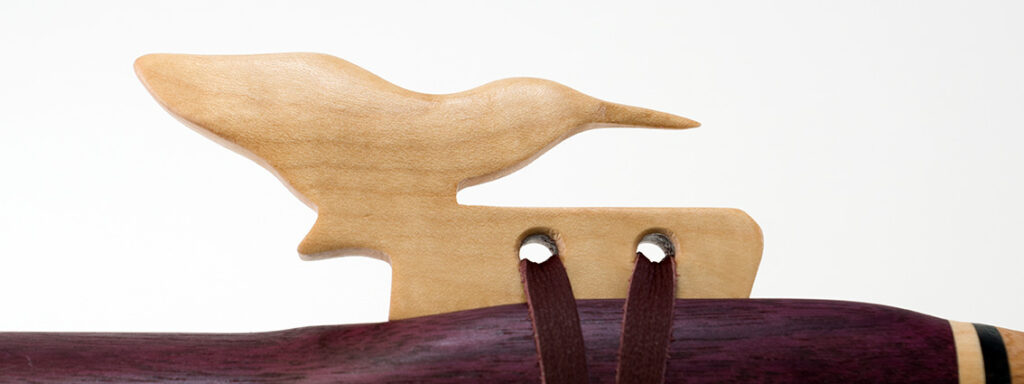 G0204 Ermani Flöte in Birke. Die Flöte schmückt sich mit einem Mittelstück in Zebrano und Zierringen in Amarant. Der Block ist ebenfalls in Birke ausgeführt.